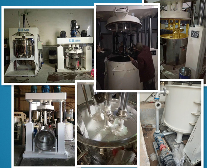 是一種多功能、強制性攪拌機,釜內有三根不同形式的攪拌器,其中一根低速攪拌器在繞釜體軸線(xiàn)轉動(dòng),其余兩根高速攪拌裝置又以不同的轉速繞自身軸線(xiàn)高速自轉,使物料在釜內作復雜的運動(dòng),受到強烈的剪切和混合。設備內山形刮壁刀繞釜體軸線(xiàn)轉動(dòng),將粘在壁上和底部的原料刮出參與混合,使其效果更為理想。設備密封性好,可電加熱(水冷卻)抽真空,具有良好的排氣除泡。強力分散機缸蓋可液壓升降,缸體可自由移動(dòng),操作十分方便。強力分散機攪拌器的形式,根據物料要求可為多層槳葉式、框式、蝴蝶式、葉輪式等。攪拌機通常配套系列液壓擠出機,以實(shí)現膏狀物料的擠出。